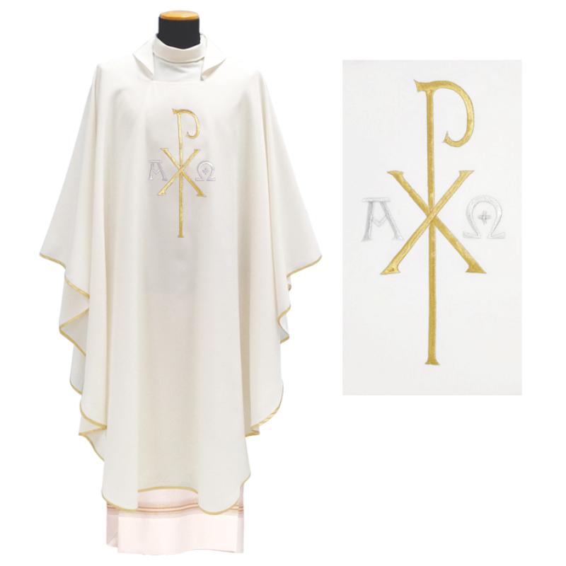 Biely ornát - Výšivka A + Omega + Px