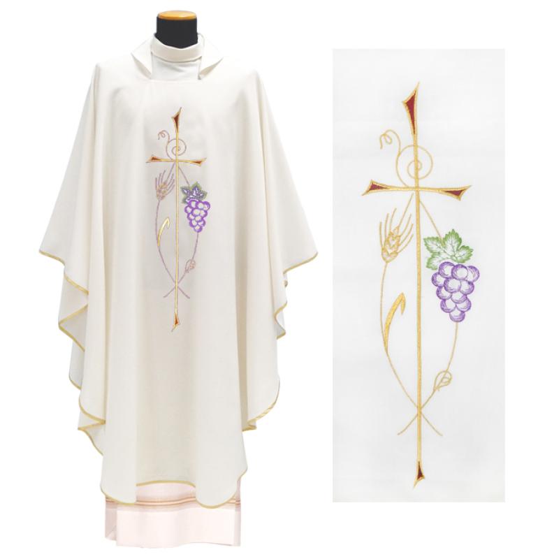 Biely ornát - Výšivka Kríž + klas + hrozno