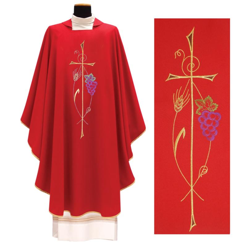 Červený ornát - Výšivka Kríž + klas + hrozno