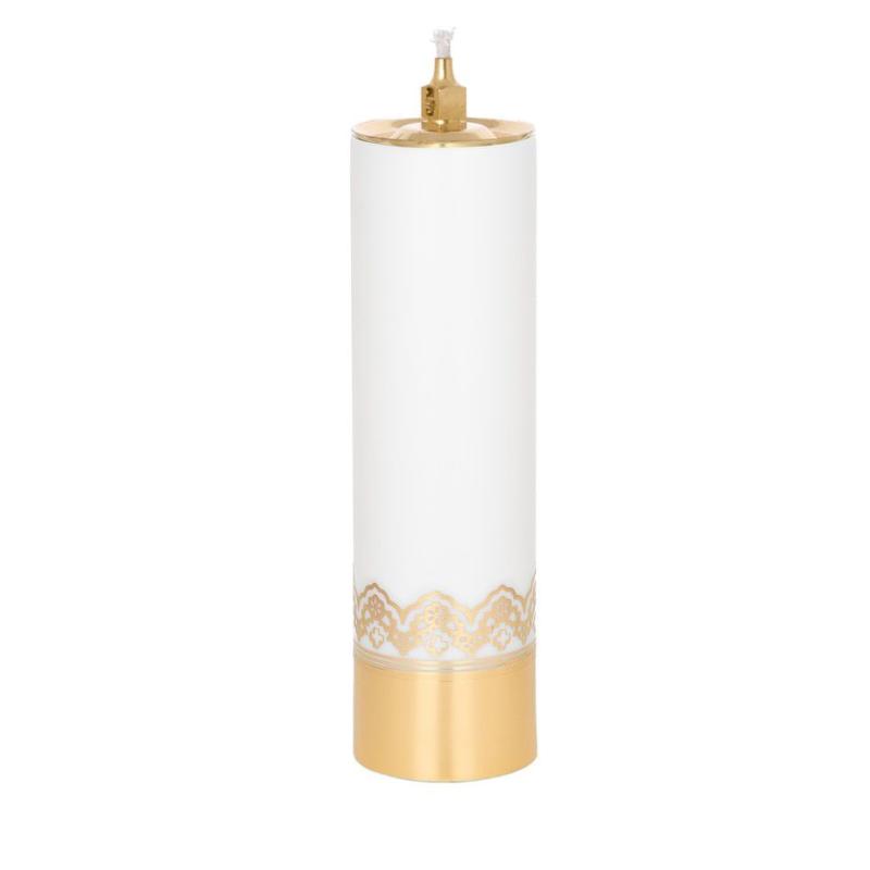 Plastová oltářní svíce s olejovou náplní 6.3x22cm.