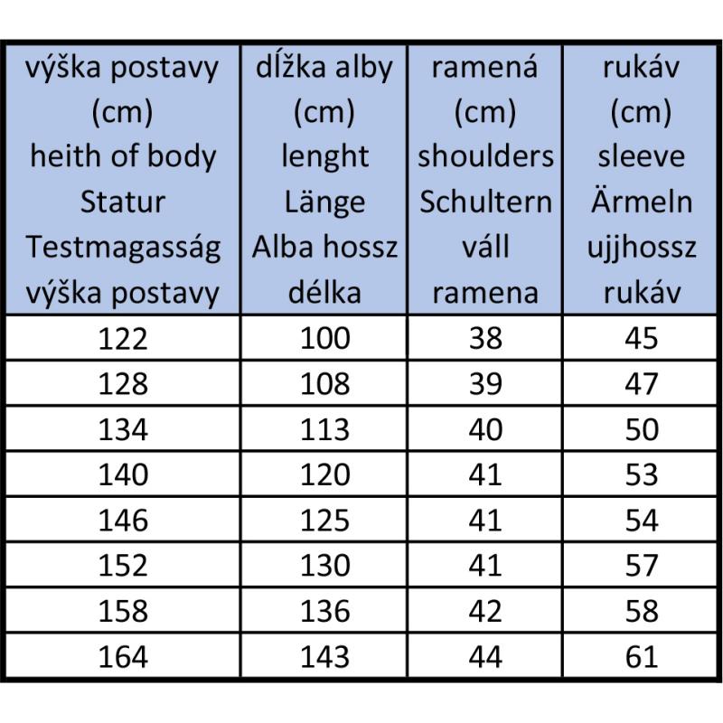 Výška postavy: 122, 128, 134, 140, 146, 152, 158, 164 cm