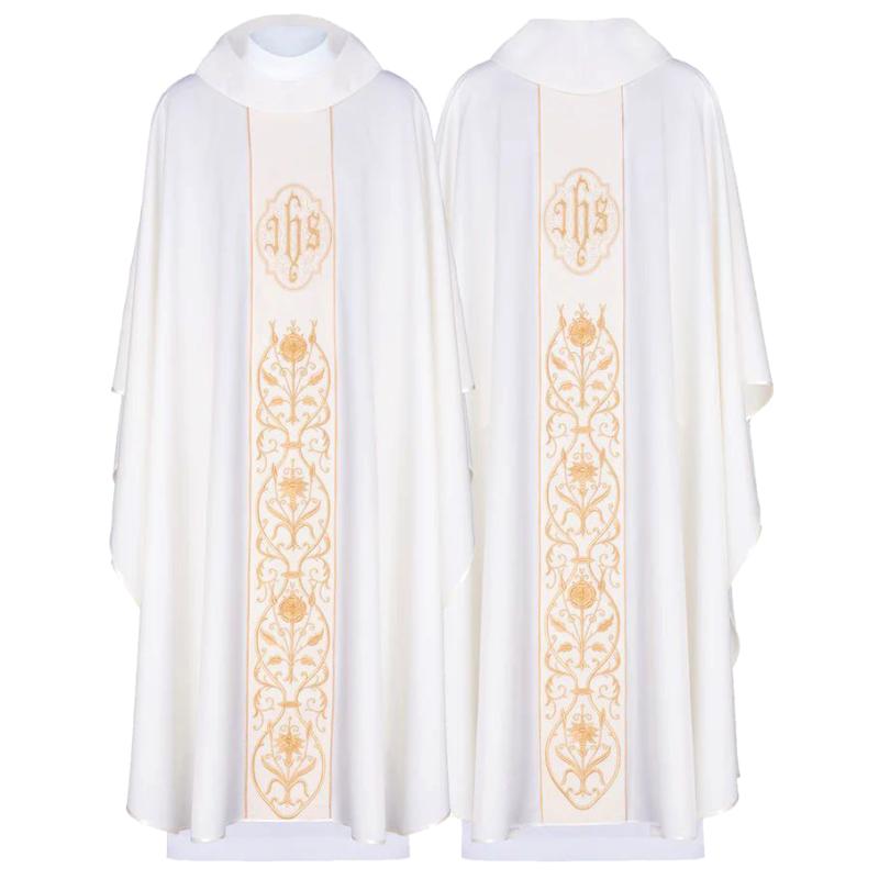 • Kasel  Weiss - Stickerei IHS + Blumen