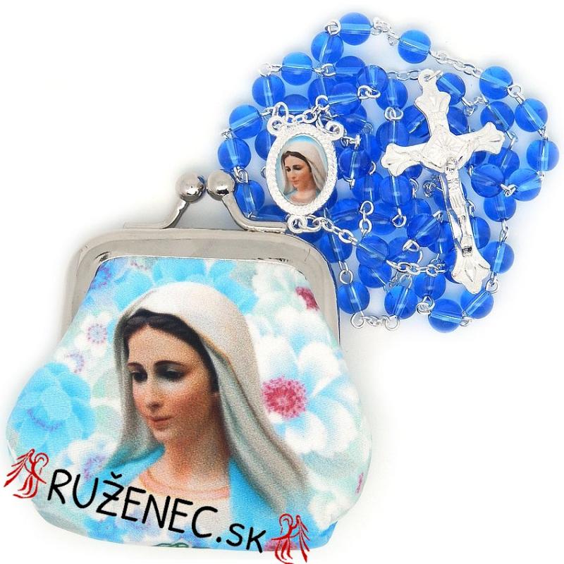 Gewebte Etui mit Rosenkranz - blau - Medjugorje