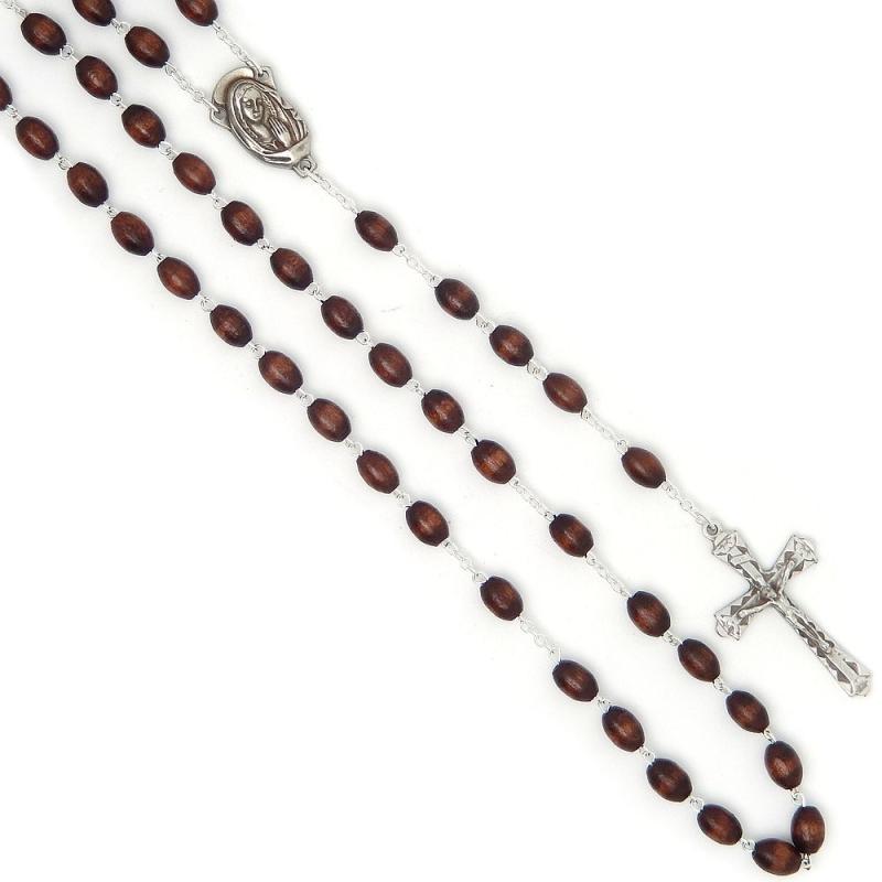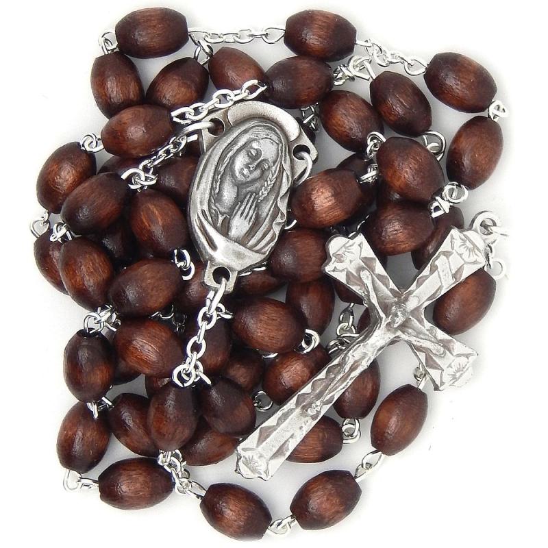 Hnedý drevený ruženec z 6x9mm brúsených drevených korálok.