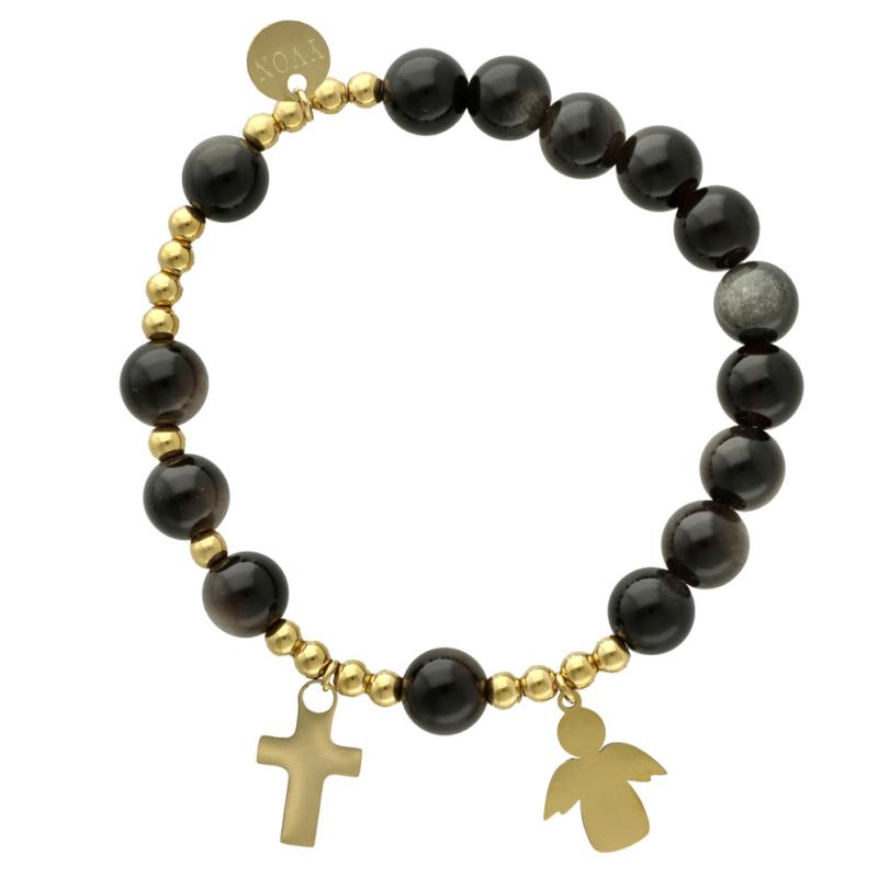 Exkluzívny ruženec na ruku - silikónová šnúra.Ružencový náramok z prírodných kameňov a nerezovej ocele.Ruženec - náramok, v elegantnej krabičke, v súprave s úložným vrecúškom. Nerezová oceľ a prírodné perly.Obvod: 16-17 cm.