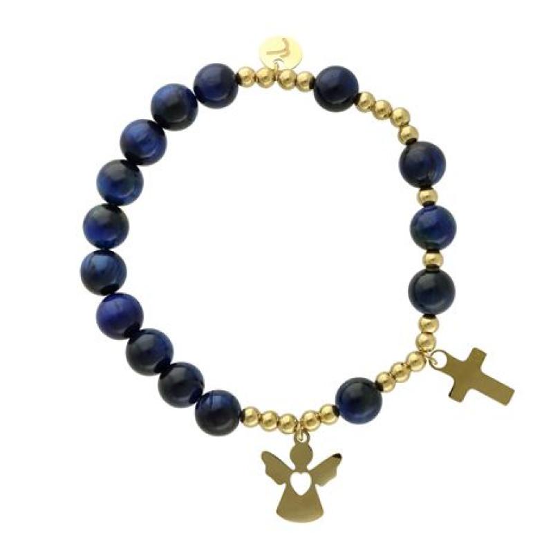 Exkluzívny ruženec na ruku - silikónová šnúra.Ružencový náramok z prírodných kameňov a nerezovej ocele.Ruženec - náramok, v elegantnej krabičke, v súprave s úložným vrecúškom. Nerezová oceľ a prírodné perly.Obvod: 16-17 cm.