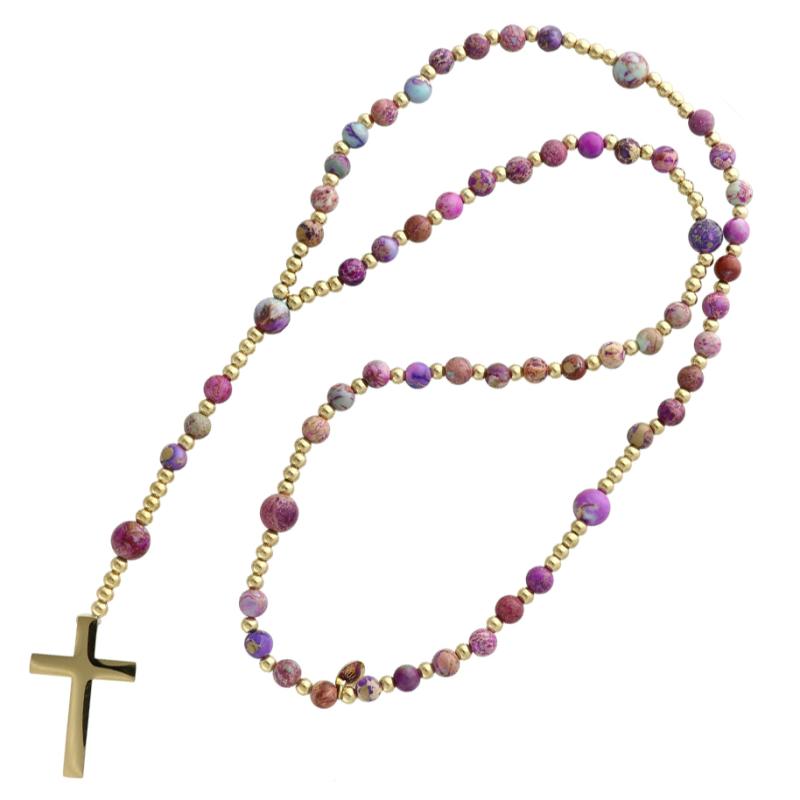Exkluzívny ruženec na šnúre - fialový cisársky jaspis