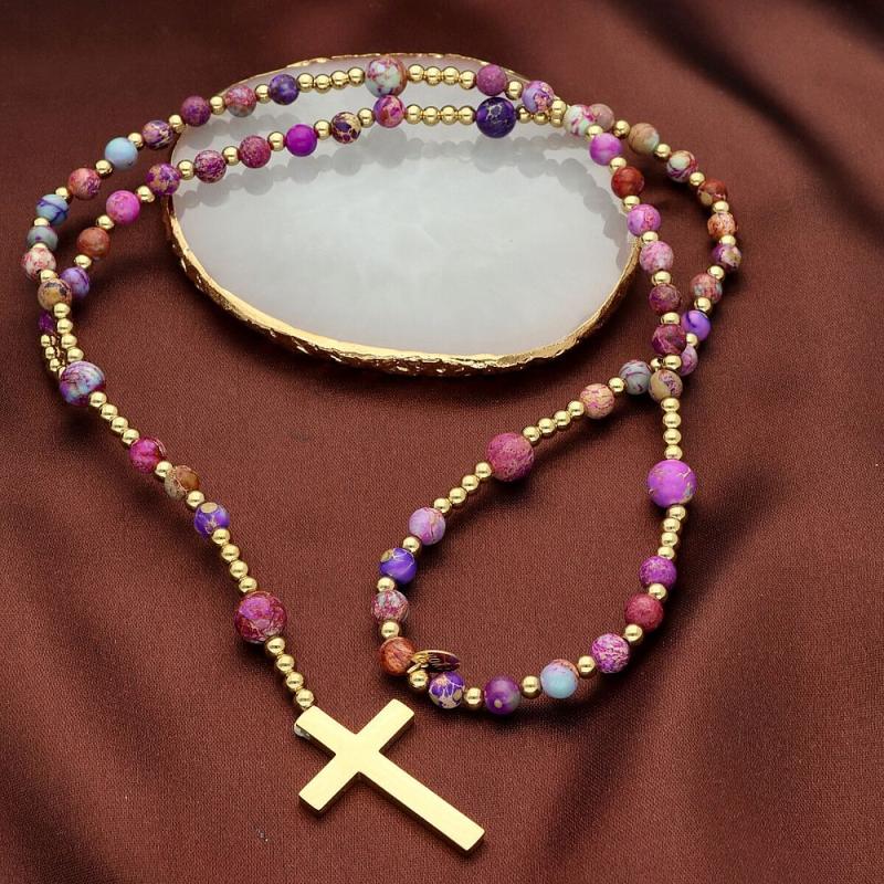 Ruženec z prírodných kameňov a nerezovej ocele.