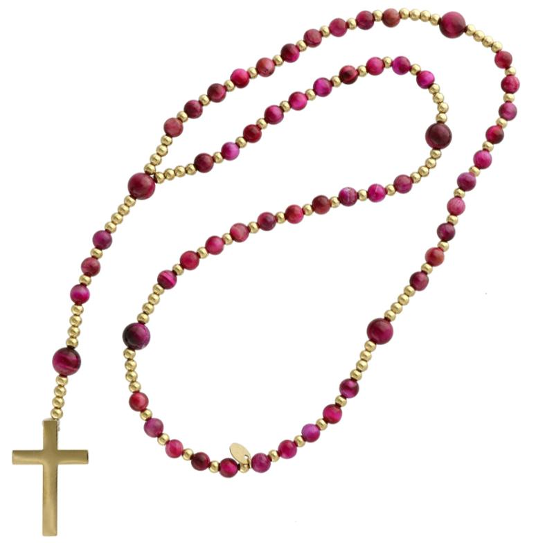 Exkluzívny ruženec na šnúre - tigrie oko - ružové