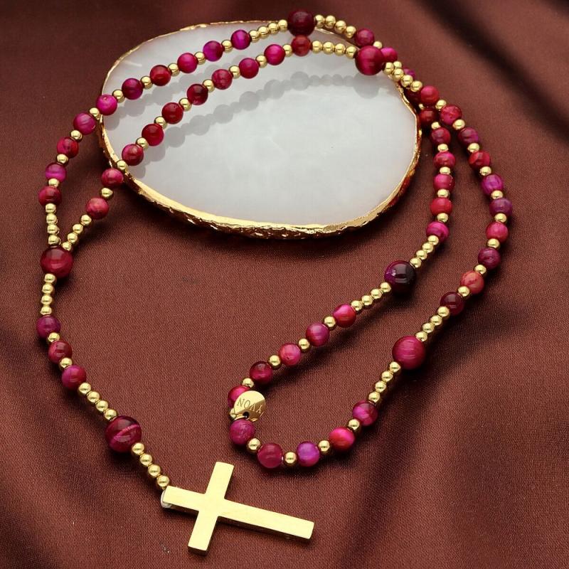 Ruženec z prírodných kameňov a nerezovej ocele.