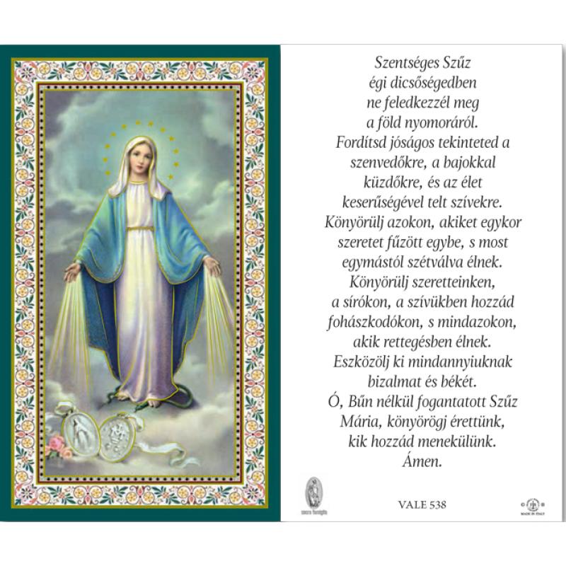 Aranyozott szentkép - imakép magyar nyelvű imádsággal