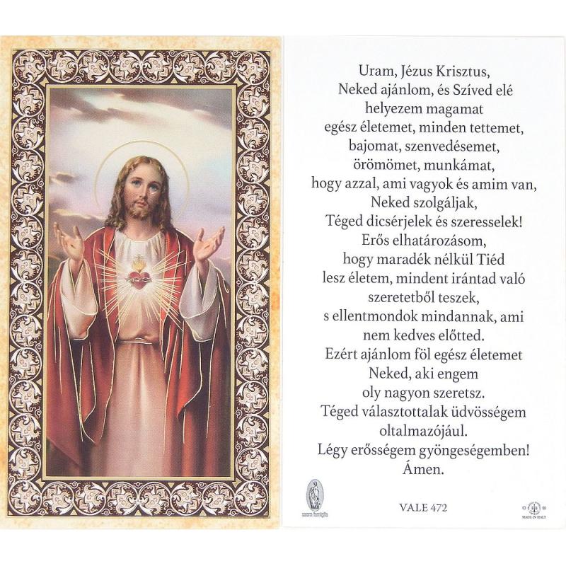 Aranyozott szentkép - imakép magyar nyelvű imádsággal1 db. Méret: 6.5x10.5cm.