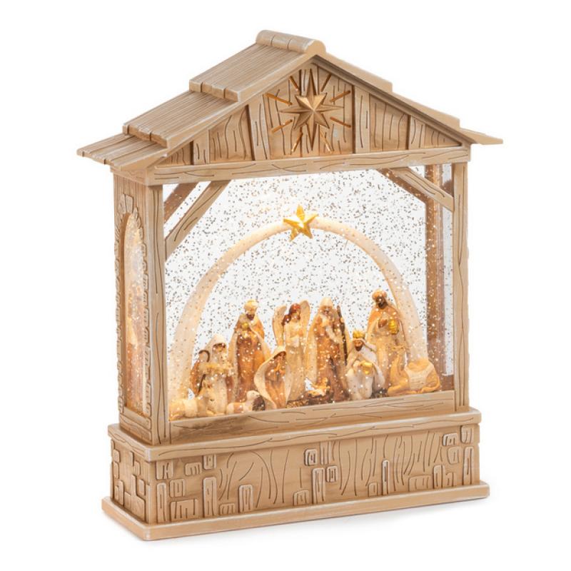 25 cm magas betlehem - zenélő.Gyönyörűen kidolgozott részletek, polyrezin anyagból.Méretek: magasság 25x21x7cm.LED lámpa.Megjegyzés: Polisztirolba és dobozban csomagolva .Problémamentes szállítás.