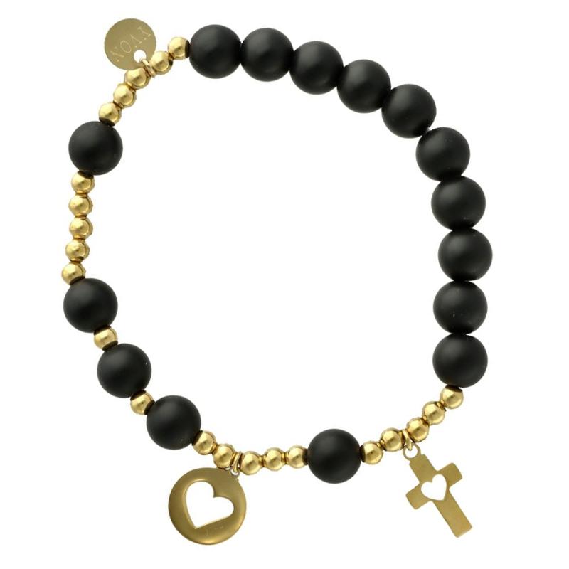 Exkluzív rózsafüzér karkötő - fekete achát gyöngyök