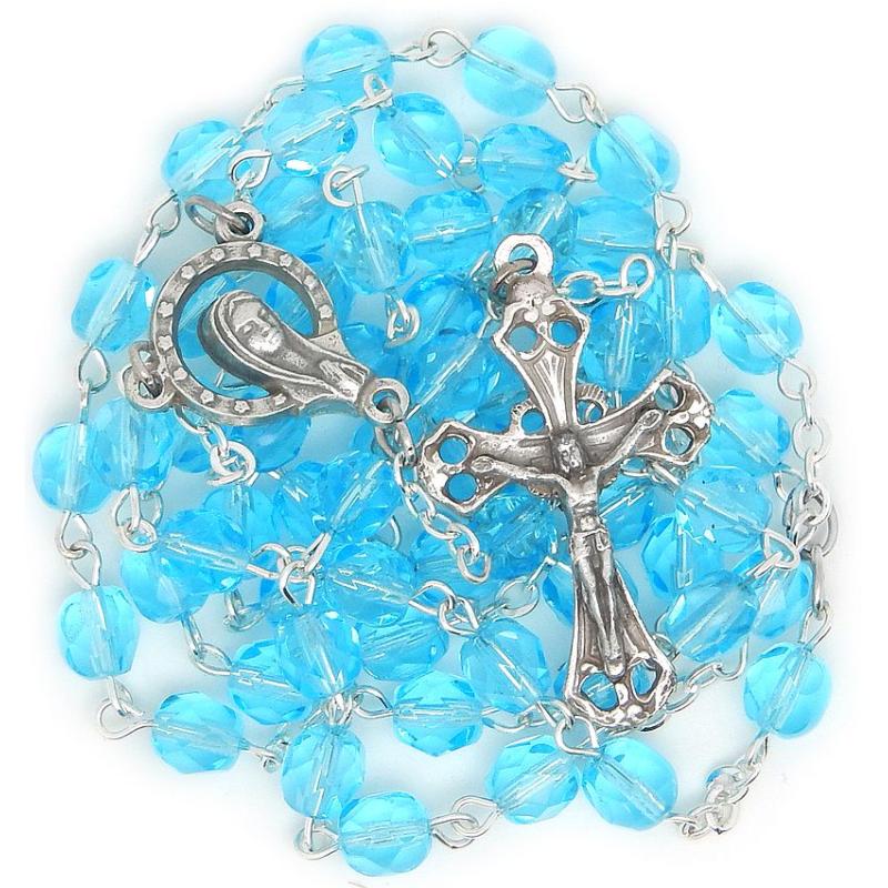 Rózsafüzér - 6mm-es csiszolt csillogó világoskék cseh-üveg kristály gyöngyökből.