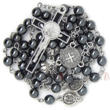 Szent Benedek rózsafüzér - 6mm-es hematit, golyó alakú gyöngyökből.