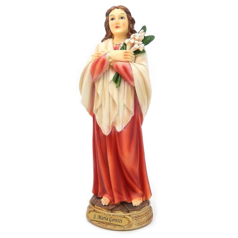 20cm magas, szépen kidolgozott, részlethű, kézzel festett Szent Maria Goretti szobor. Műgyanta, fagyásálló anyagból. Ütésálló csomagolásban postázzuk. Postán küldhető.