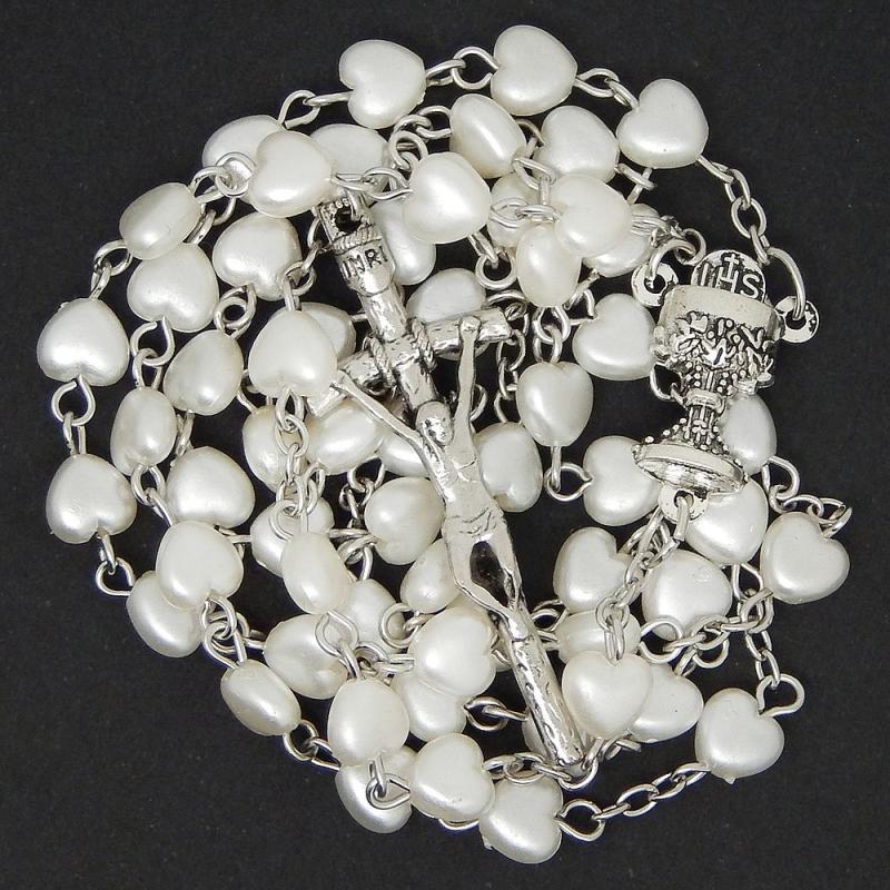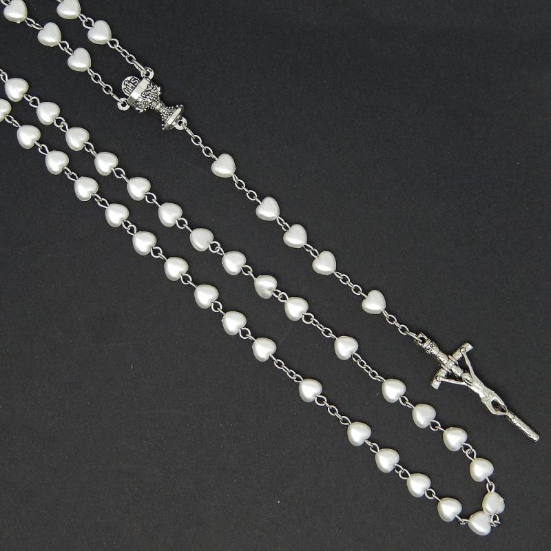 Ruženec z bielych perleťových srdiečok veľkosti 6mm.