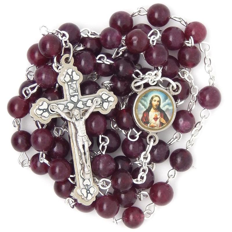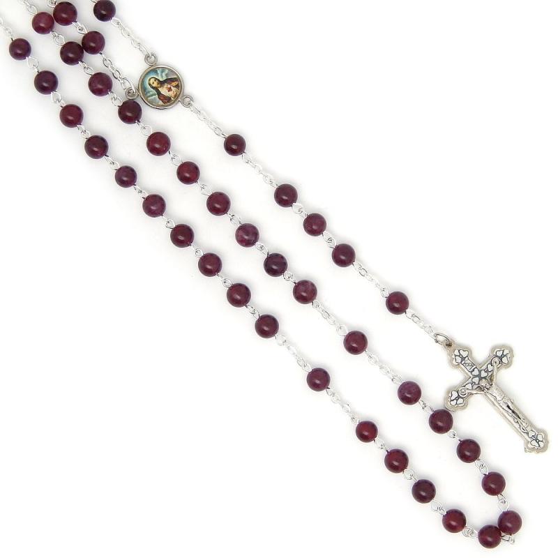 Ruženec z minerálu - granát.Brúsené guličky veľkosti 6mm.Celková dĺžka 48cm, obvod: 60cm.Ručná práca.