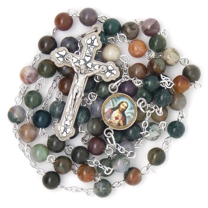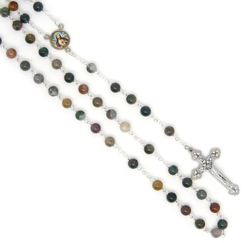 Ruženec z minerálu - indický achát.Brúsené guličky veľkosti 6mm.Celková dĺžka 48cm, obvod: 60cm.Ručná práca.