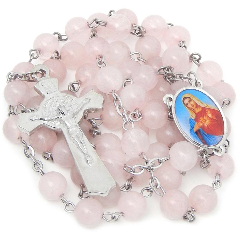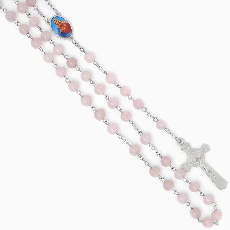 Ruženec z minerálu - ruženín.Brúsené guličky veľkosti 8mm.Celková dĺžka: 60cm, obvod: 80cm.Ručná práca.