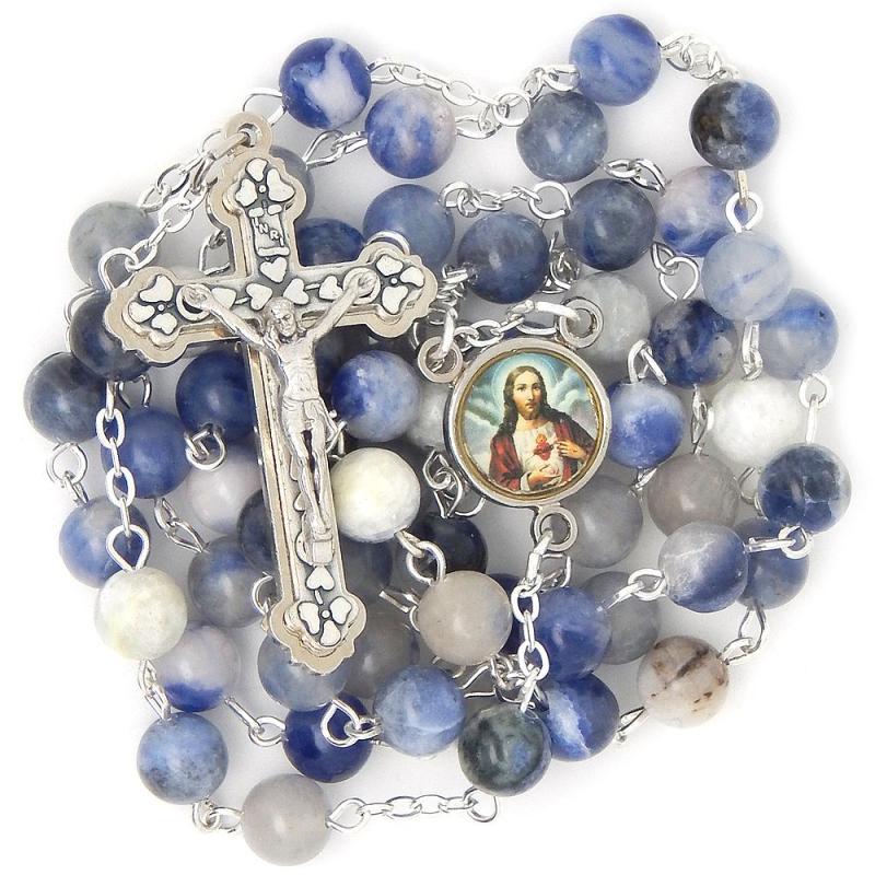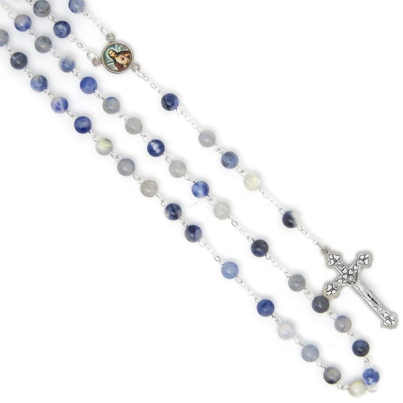 Ruženec z minerálu - Sodalit.Brúsené guličky veľkosti 6mm.Celková dĺžka 48cm, obvod: 60cm.Ručná práca.