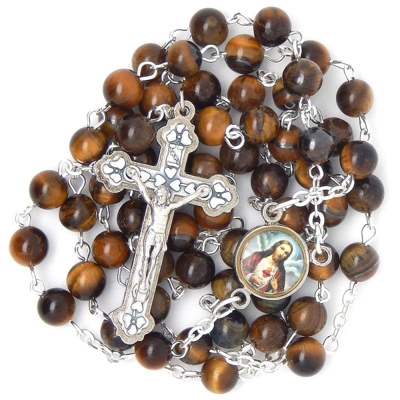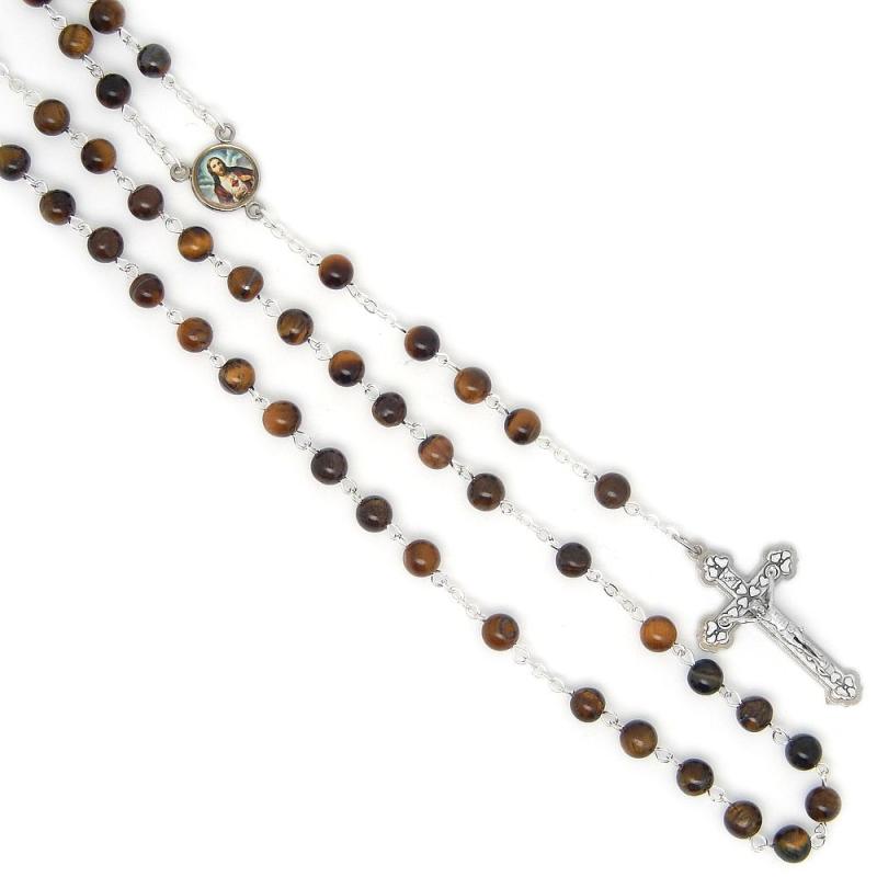 Ruženec z minerálu - Tigrie oko.Brúsené guličky veľkosti 6mm.Celková dĺžka: 48cm, obvod 60cm.Ručná práca.